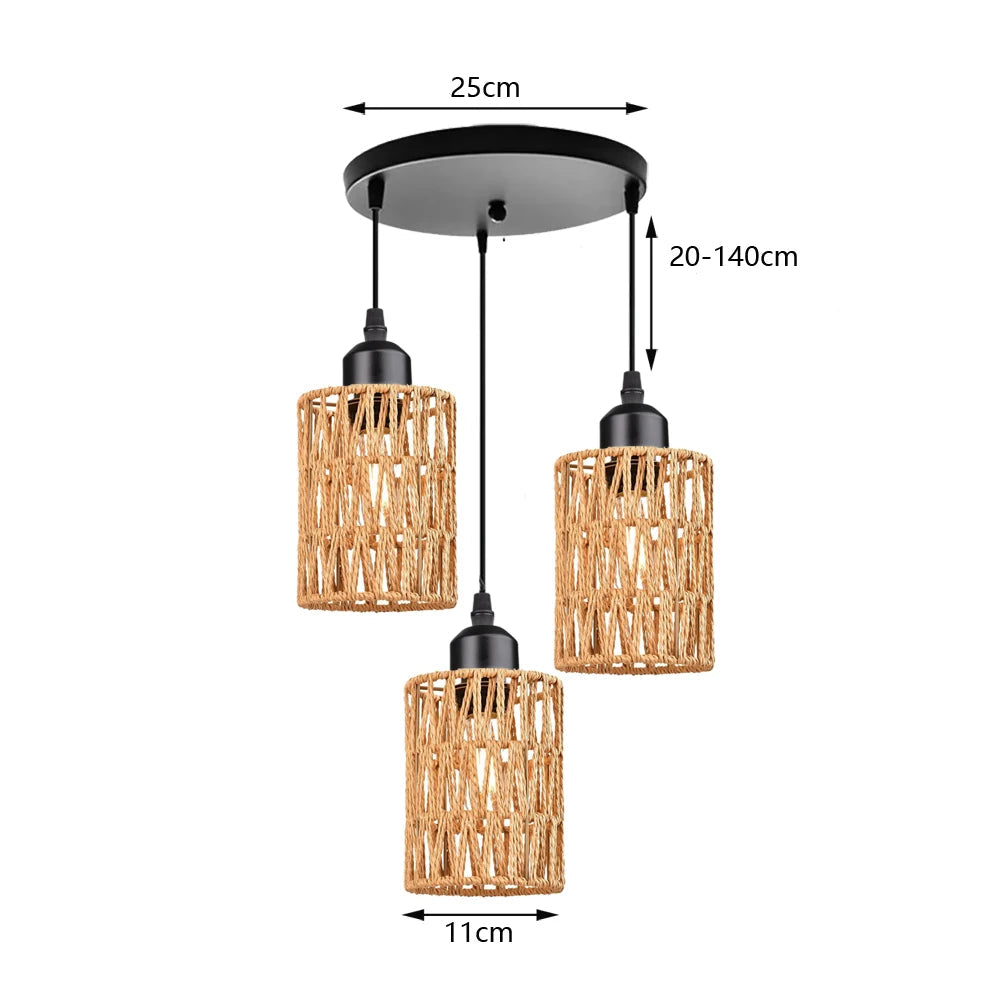 Plafonnier en rotin salon vintage